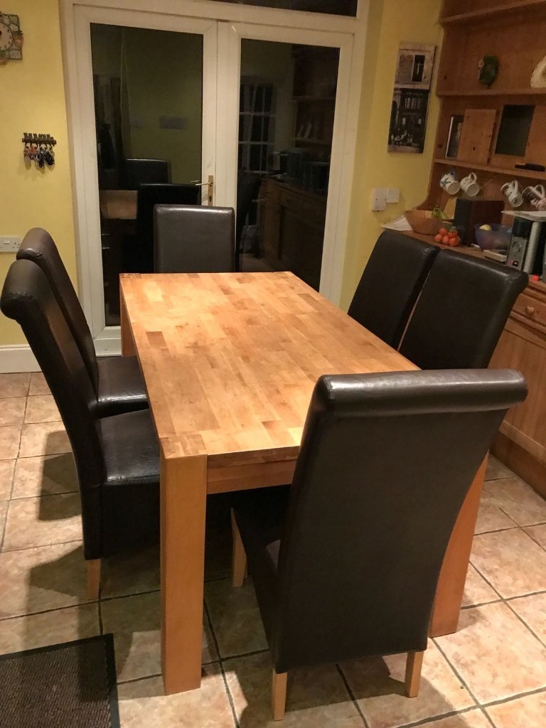Never had the felt protector remove and i will include that with the sale. Boone up to 4 seat dining table and 4 chair set, concrete resin top. Our range of dining tables with a set of 8 chairs will give everyone plenty of elbow room to spare. This sturdy table table has been hand crafted from solid oak in the jacobean style, the table top is 3 cm thick, also note the beautiful carved decoration it is a medium oak with a striking grain, and good patina. Mecor dining chairs set of 8,kitchen leather chair with solid wood legs leather padded dining room furniture (8xblack).