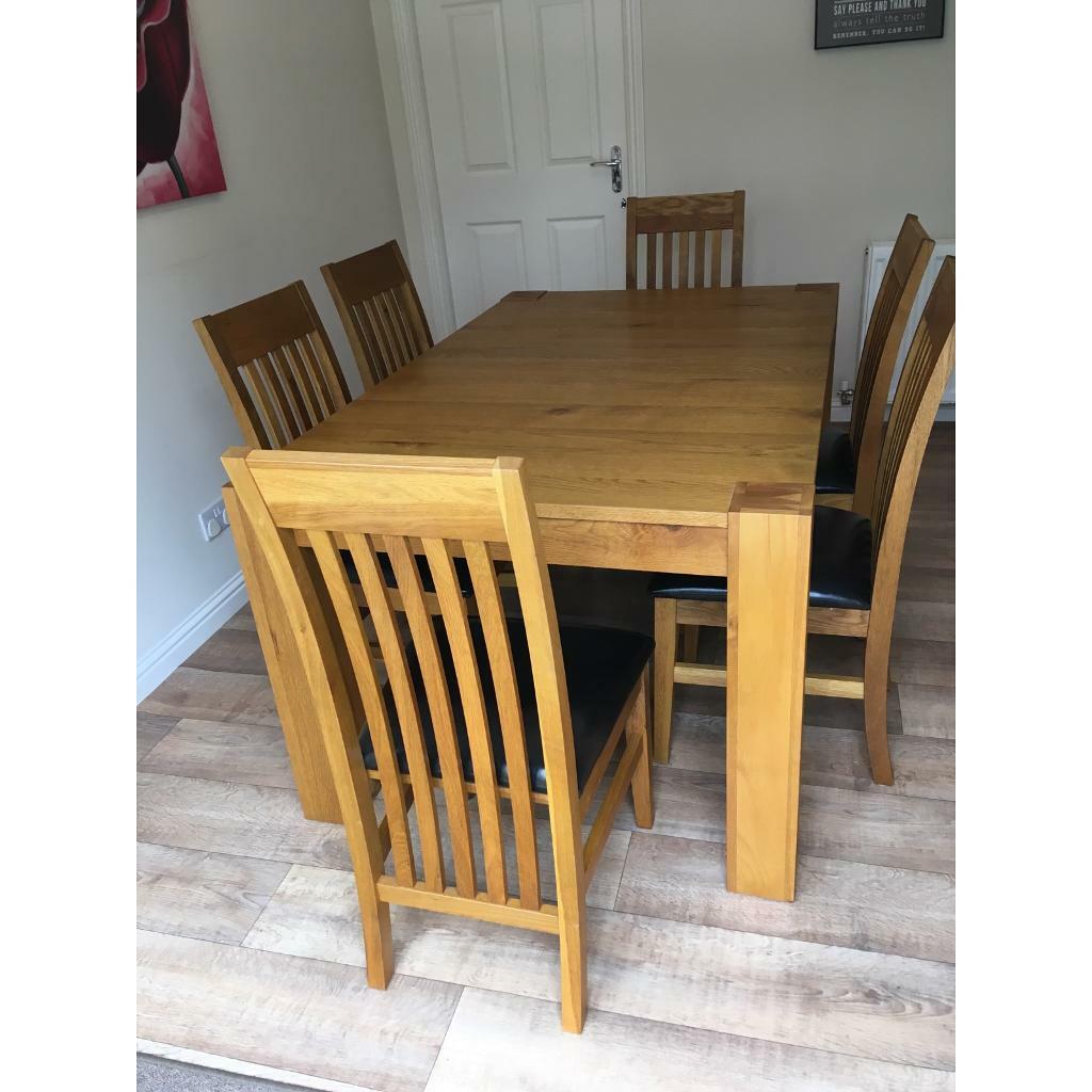 Solid Oak Dining Room Table And 8 Chairs : 20 Photos Chunky Solid Oak Dining Tables and 6 Chairs ... - Mecor dining chairs set of 8,kitchen leather chair with solid wood legs leather padded dining room furniture (8xblack).. Solid oak extending dining table and 8 chairs, great condition, free delivery. Stunning 8 seater solid wood dining room table and chairs. For something a little more unusual, try an oval oak dining table. Dining table and chair set 2 seater solid pine wood rustic wax finish bargain!!! Pairs beautifully with the dark sede chairs we purchased.